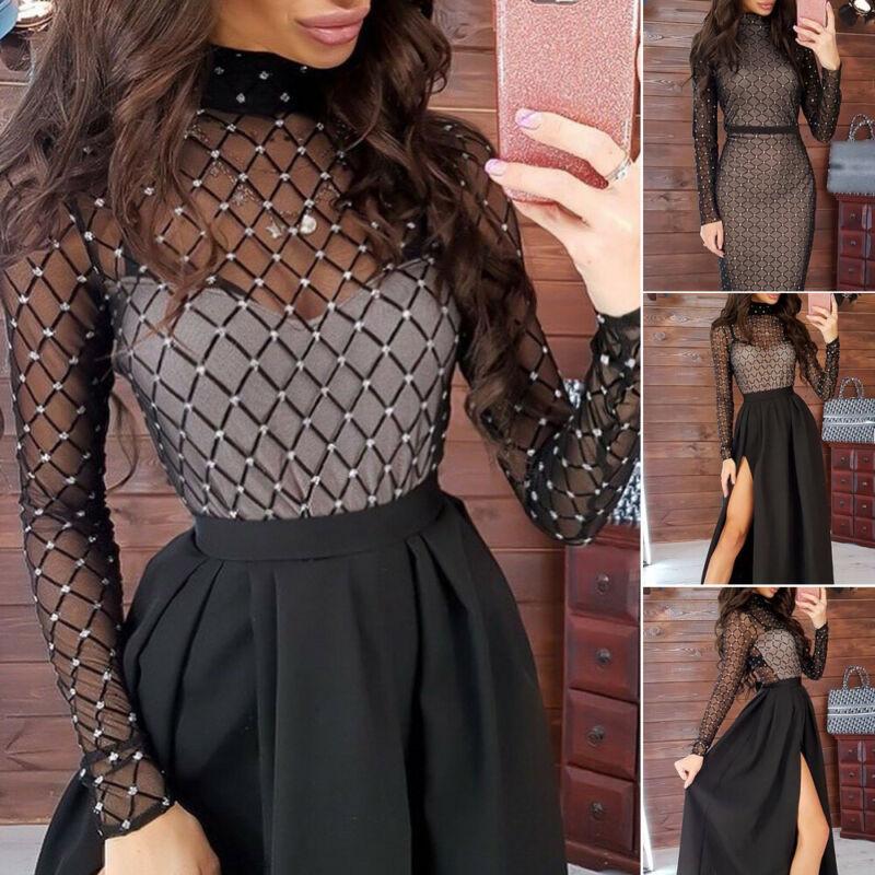 2019 Fashion Trend Women Bandage Sheer Bodycon Long Sleeve Dress Lady Girls Party Cocktail Club Midi Dress