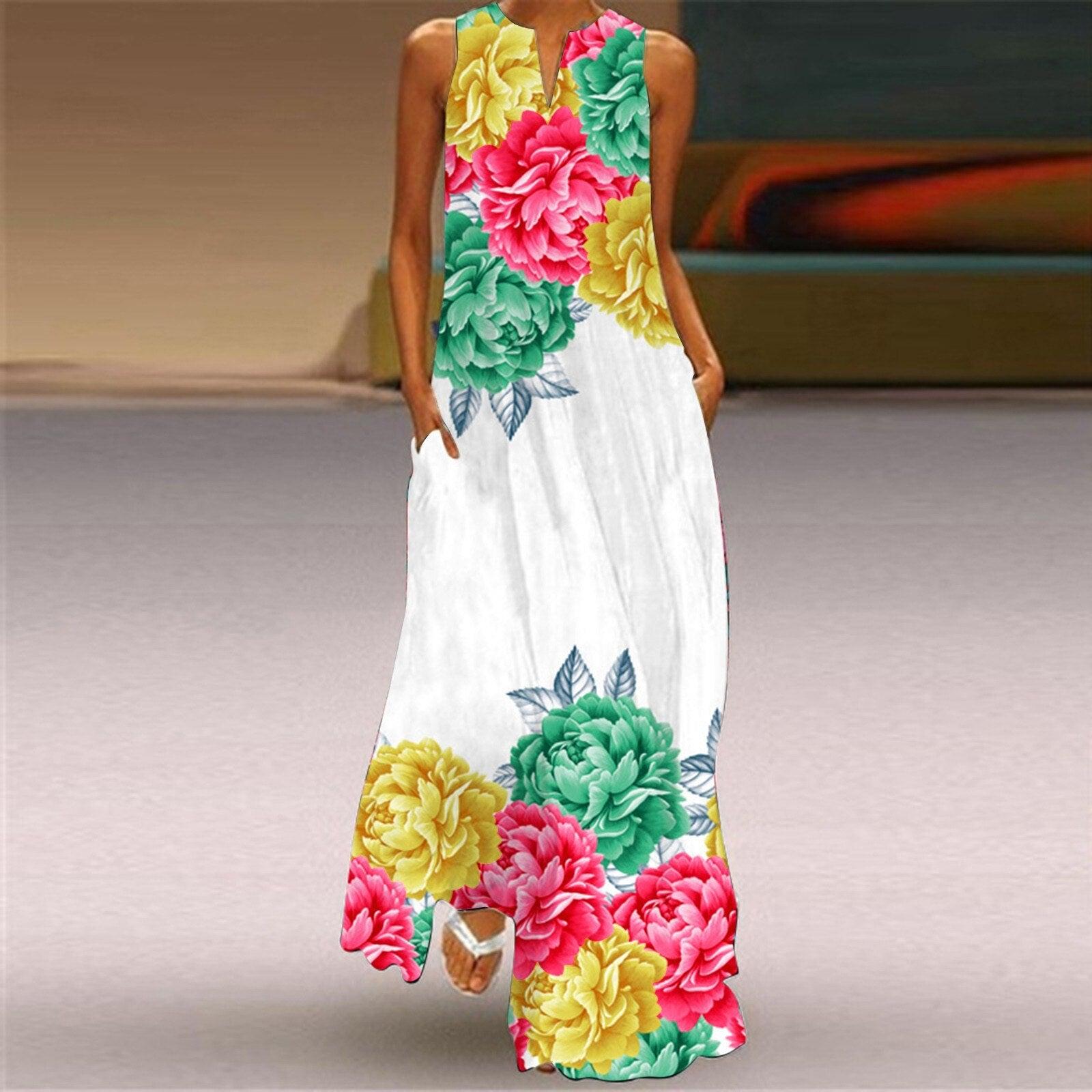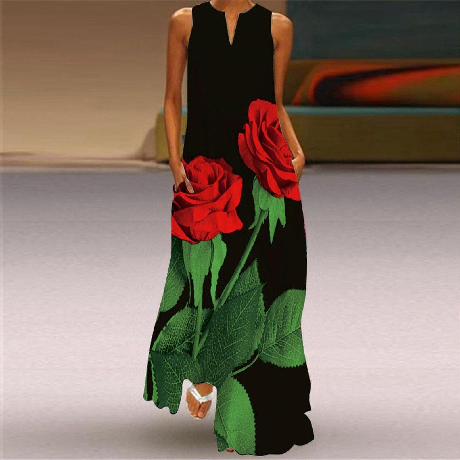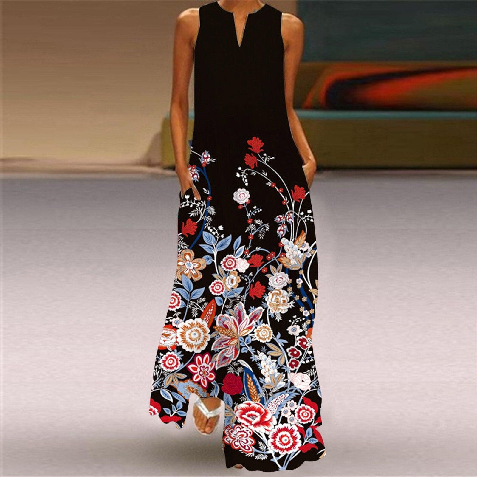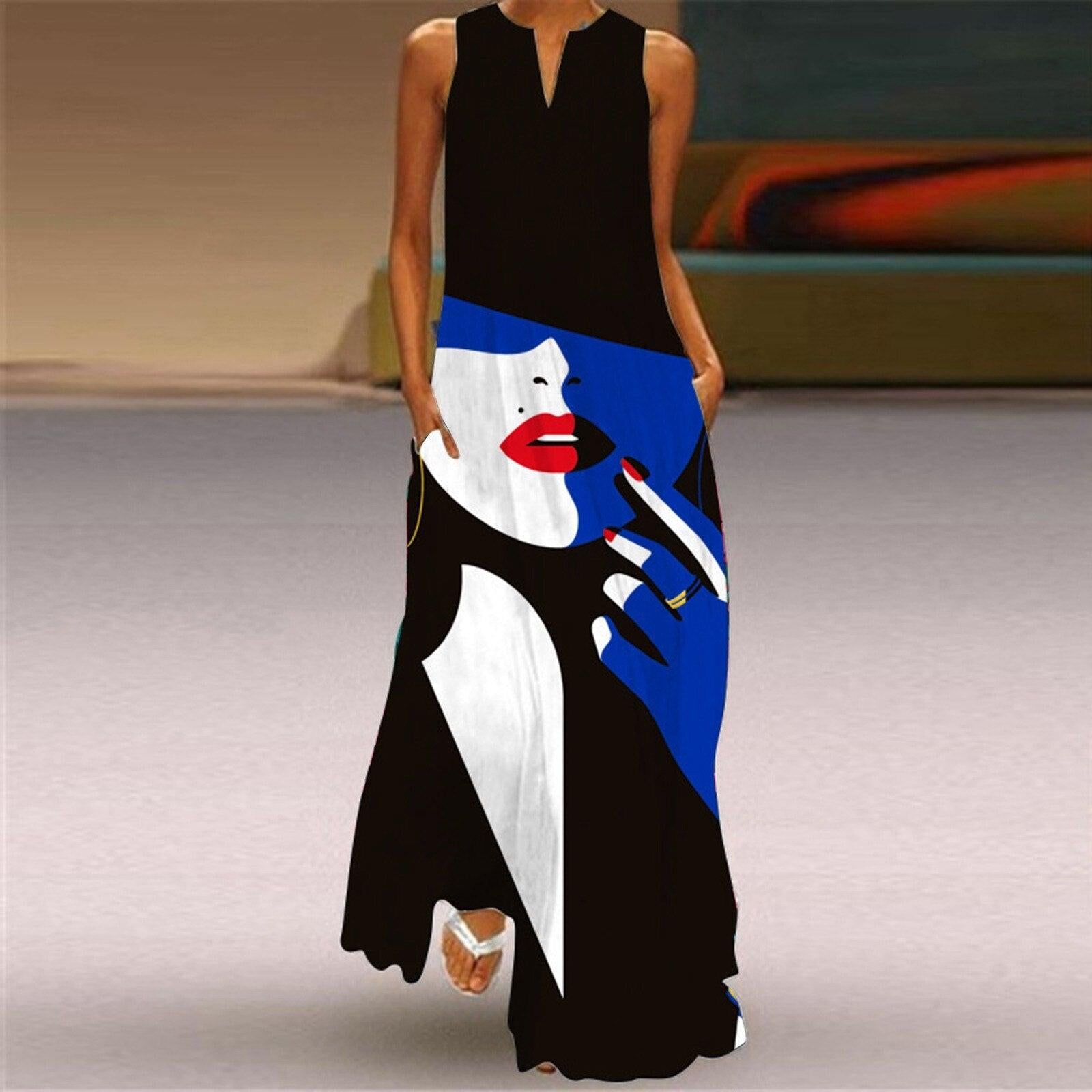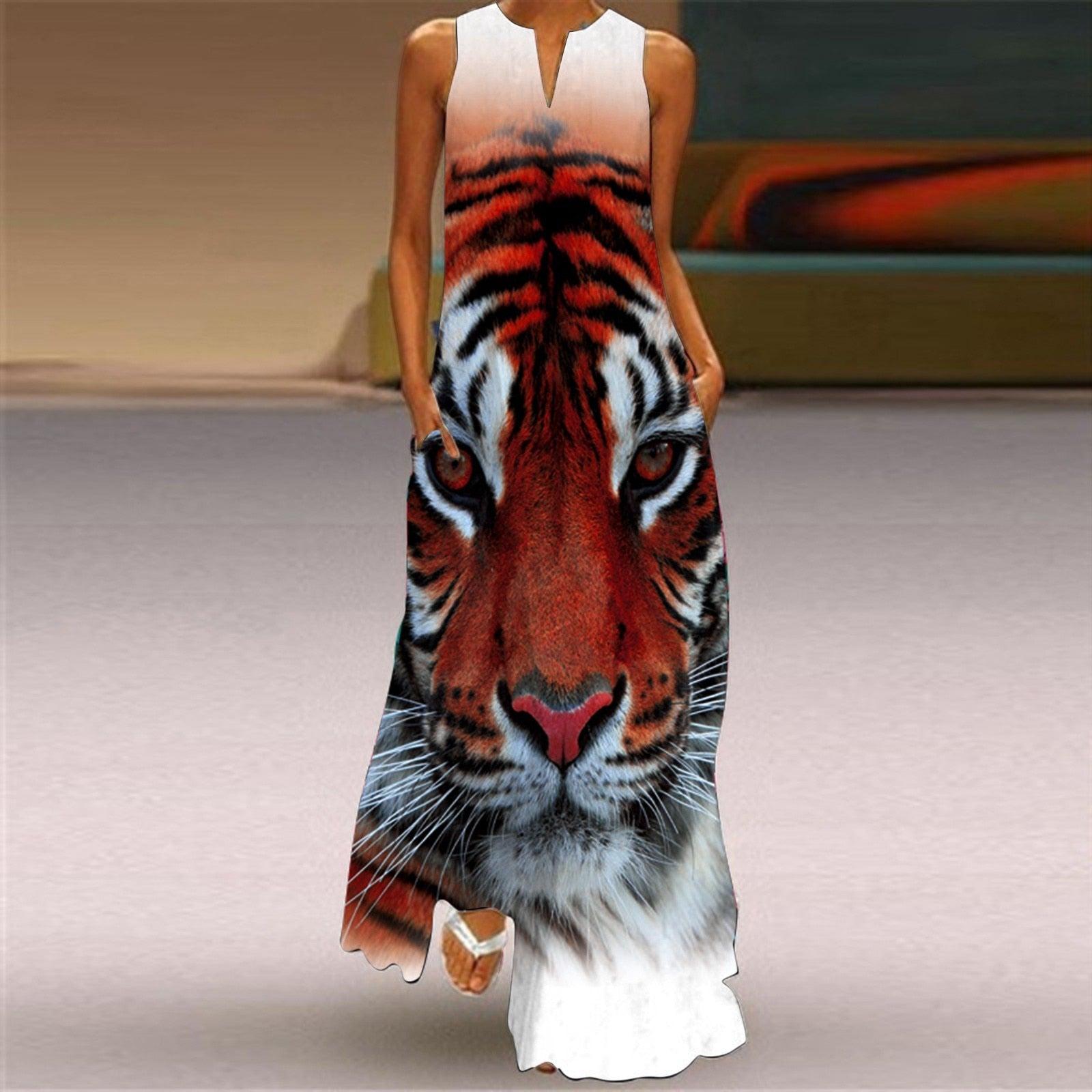 3D Animal Pritned Vintage Long Maxi Dress Women V Neck Sleeveless Summer Dress Elegant Fashion Party Dress Robe Longue
