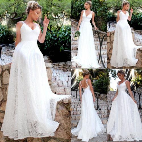 Backless Women Lace Formal Wedding Bridesmaid Long Party Ball Gown Dress