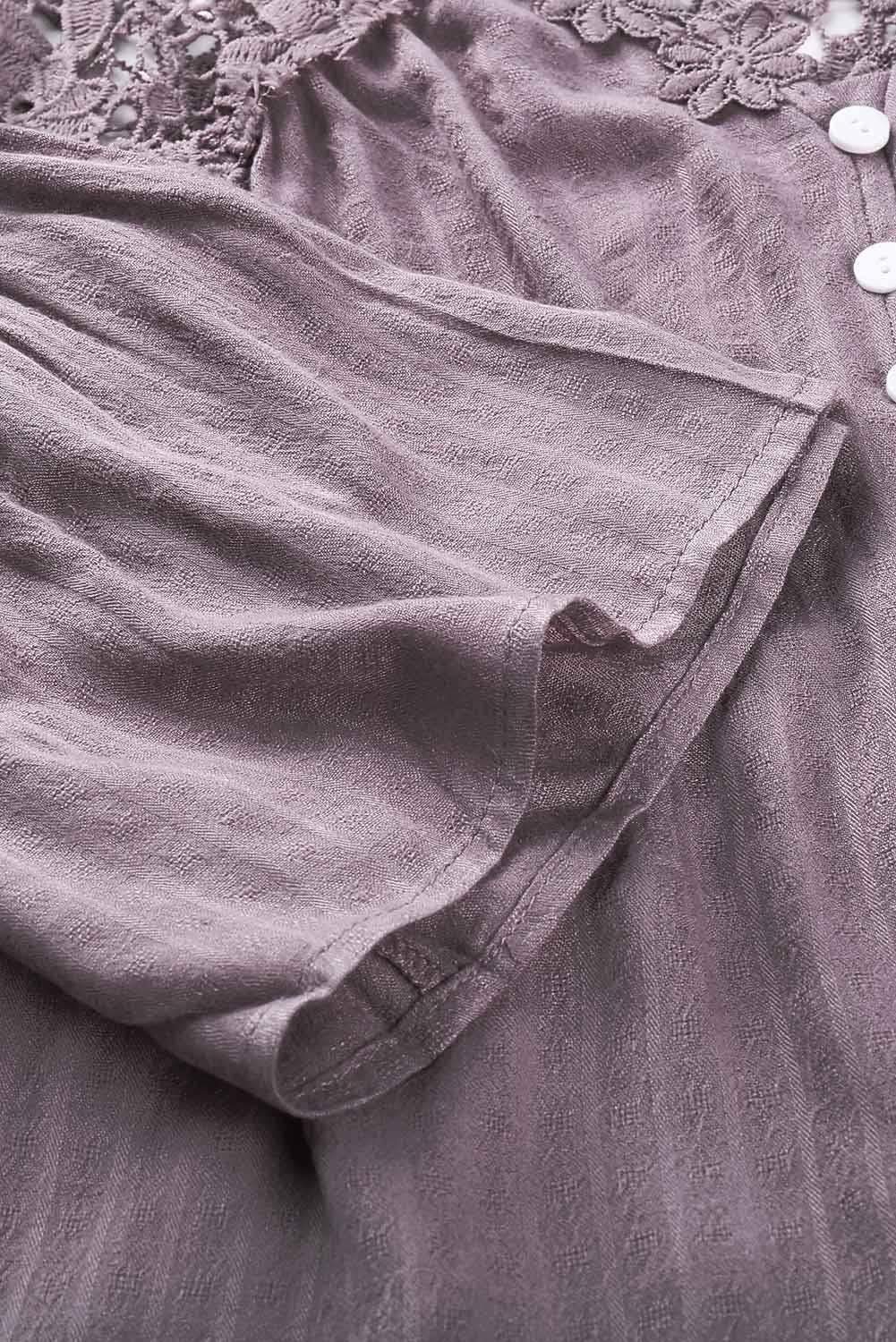 â¢A heavenly touch of crochet lace details the upper body of this blouson sage top