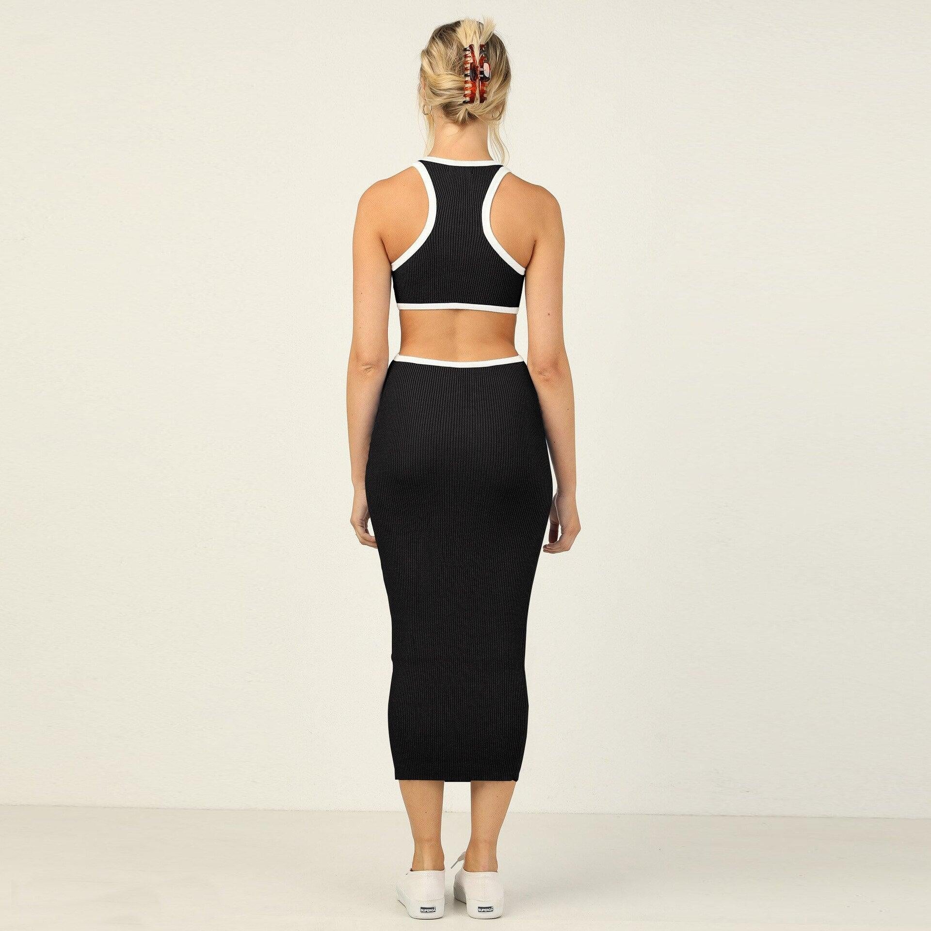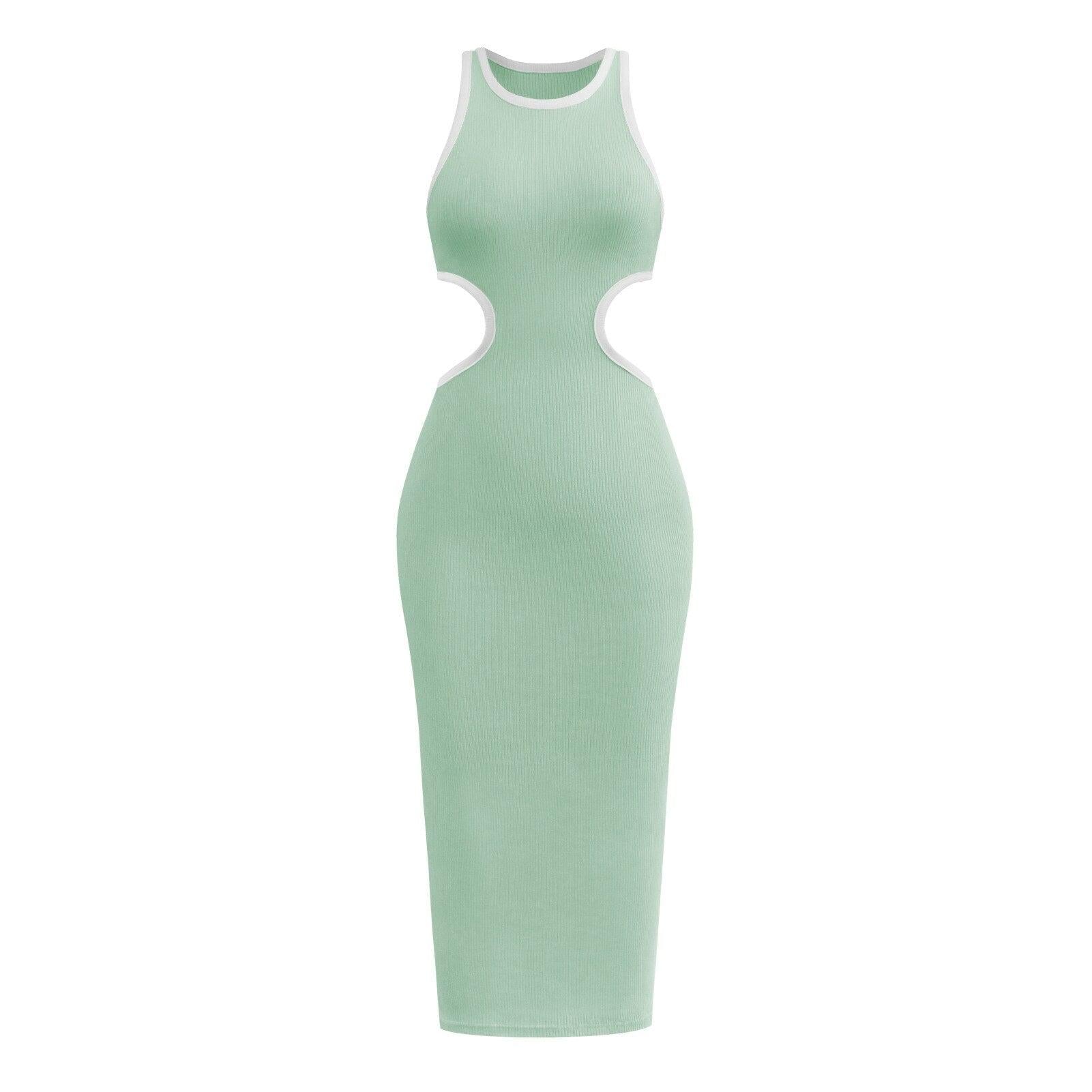 Knitted Ribbed Cut Out Long Tank Dresses Women Crewneck Backless Hollow Out Club Party Bodycon Maxi Dress Y2K Streetwear