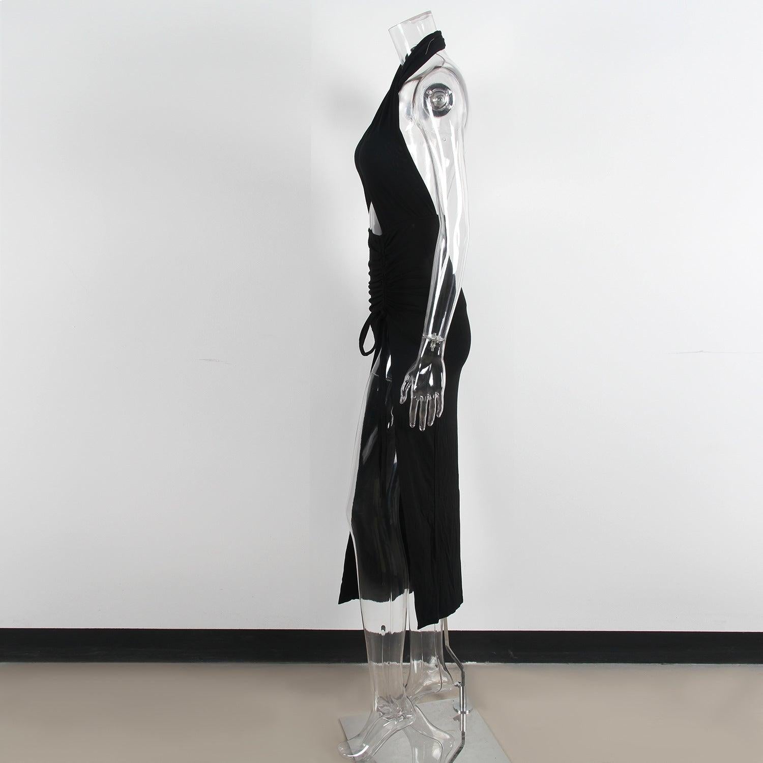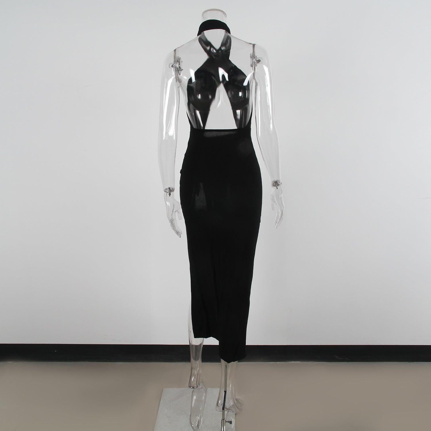 Women Clothing Chest Cross-Halterneck Dress Backless Solid Color Party Dress
