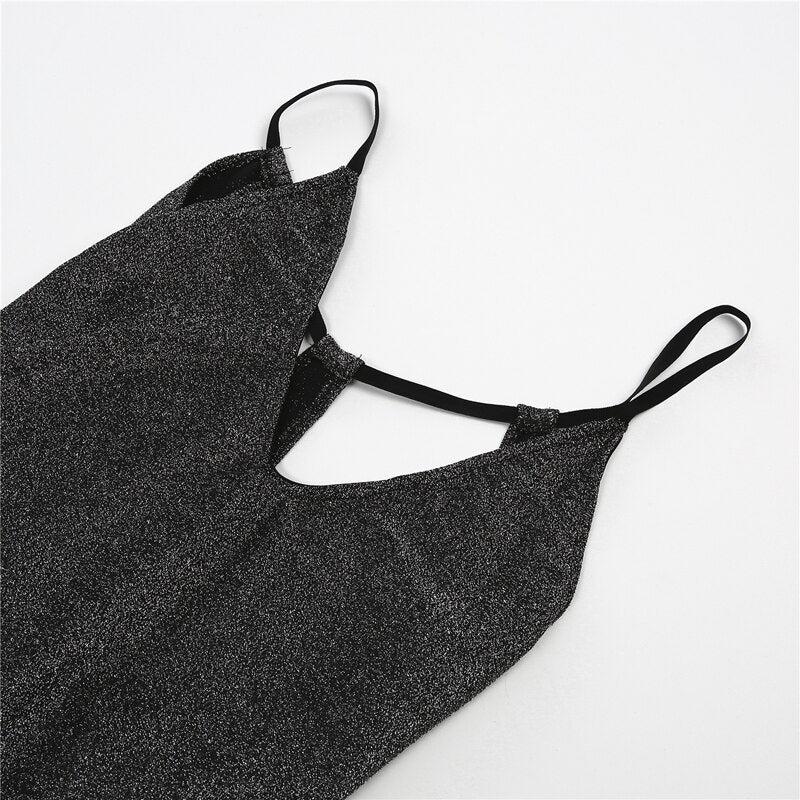 Women Ladies Fashion Summer Evening Party Dress Sleeveless Deep V-Neck Skinny High Waist Solid Sequined Mini Dress